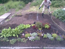 In other news, we are waiting for the potatoes and tomatoes to be ready, and in the slightly longer term, still awaiting beetroot, spring onions and normal onions. We are also turning our attention to the back section, but we've had a lot of rain recently, so the digging has been a bit of a non-starter. We are also doing very well on the flower front, with nearly everything in bloom.